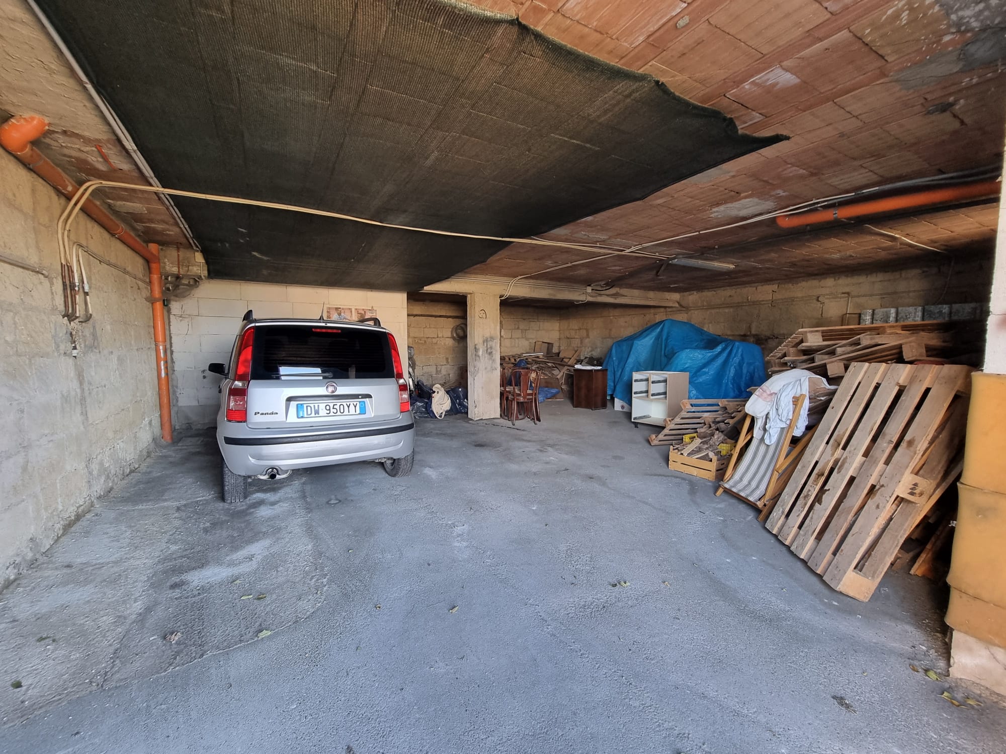 Area esterna con giardino adiacente e garage di 100mq con posti auto esterni ed interni.