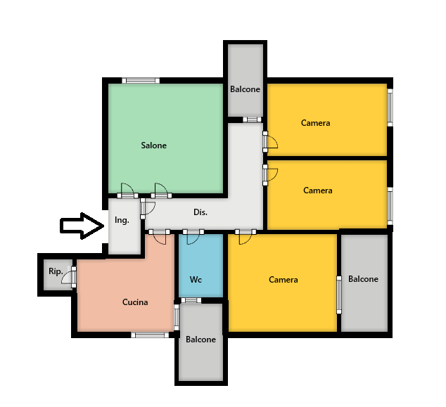 L'immobile, caratterizzato da una tripla esposizione e ottima luminosità, internamente è cosi composto: ingresso in disimpegno, cucina, ampio salone, tre camere da letto, bagno, ripostiglio e tre balconi.